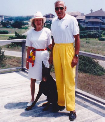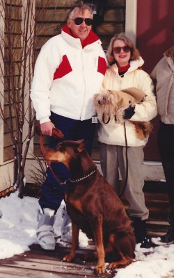 In their memory, we share a few photos of them with their Dobermans. Here they are with Tanker and Toonie, their beloved children.