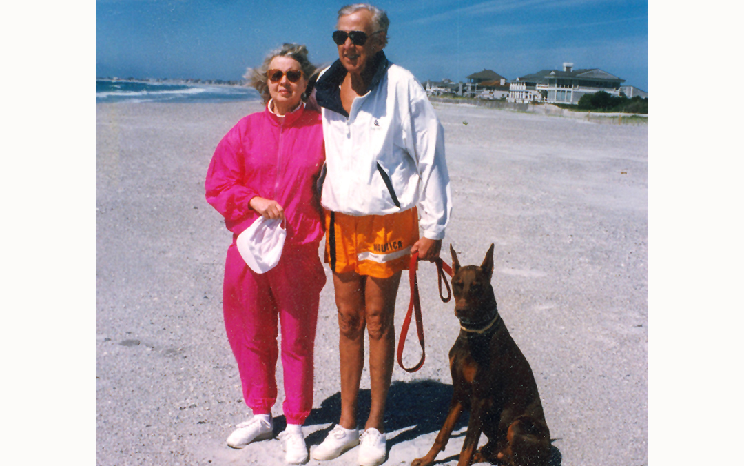 In their memory, we share a few photos of them with their Dobermans. Here they are with Tanker and Toonie, their beloved children.