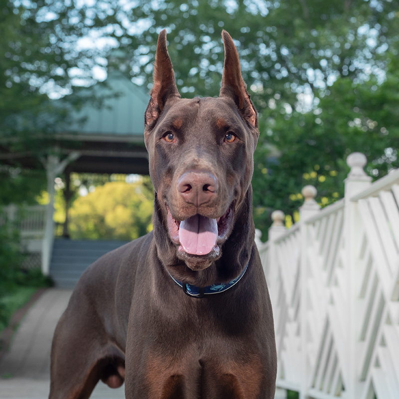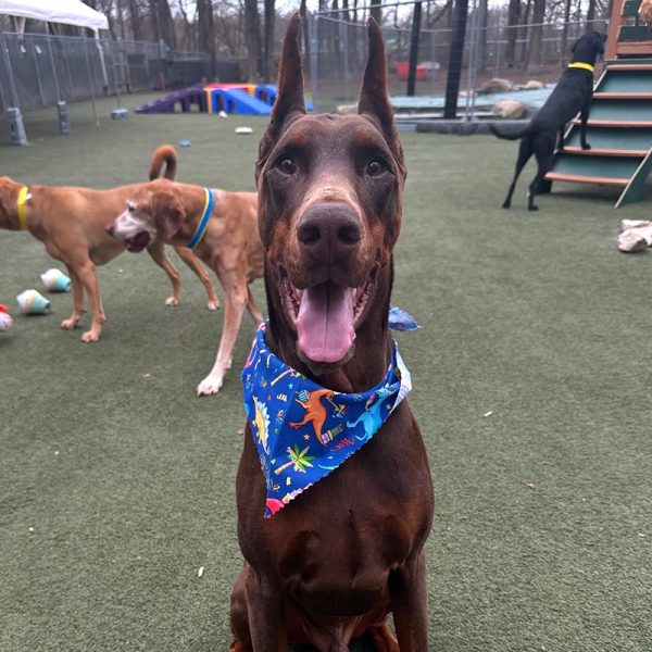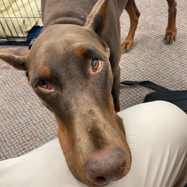 Knox is a male 6-year-old red Doberman who is fun-loving, goofy, loyal, and affectionate. Knox is neutered, microchipped, and fully up to date on all his vaccines; he’s healthy and ready to settle into his forever home. He completed puppy classes and basic/foundation obedience when he was younger, is house trained, crate trained, and has experience attending doggy daycare and being boarded, which means he is well socialized and can be around other dogs and adults. He is used to having an e-collar on and has been trained with one and responds to it. He can also walk with a prong collar on – he has no experience with harnesses.